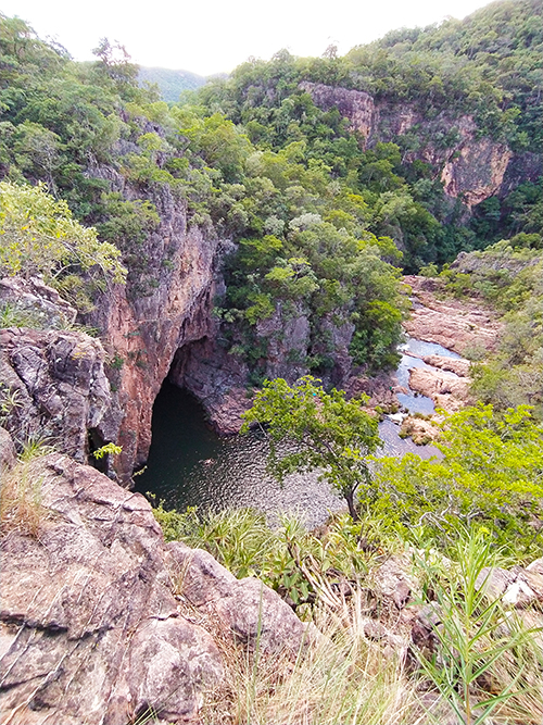Após percorrer 12km de asfalto e 35 de estrada de terra, chegaremos ao complexo, também conhecido como Santuário das Pedras, onde vamos percorrer cerca de 7km de trilha (ida e volta), e conhecer mais de 8 lindas Cachoeiras e vários poços de cor esverdeada para banho!